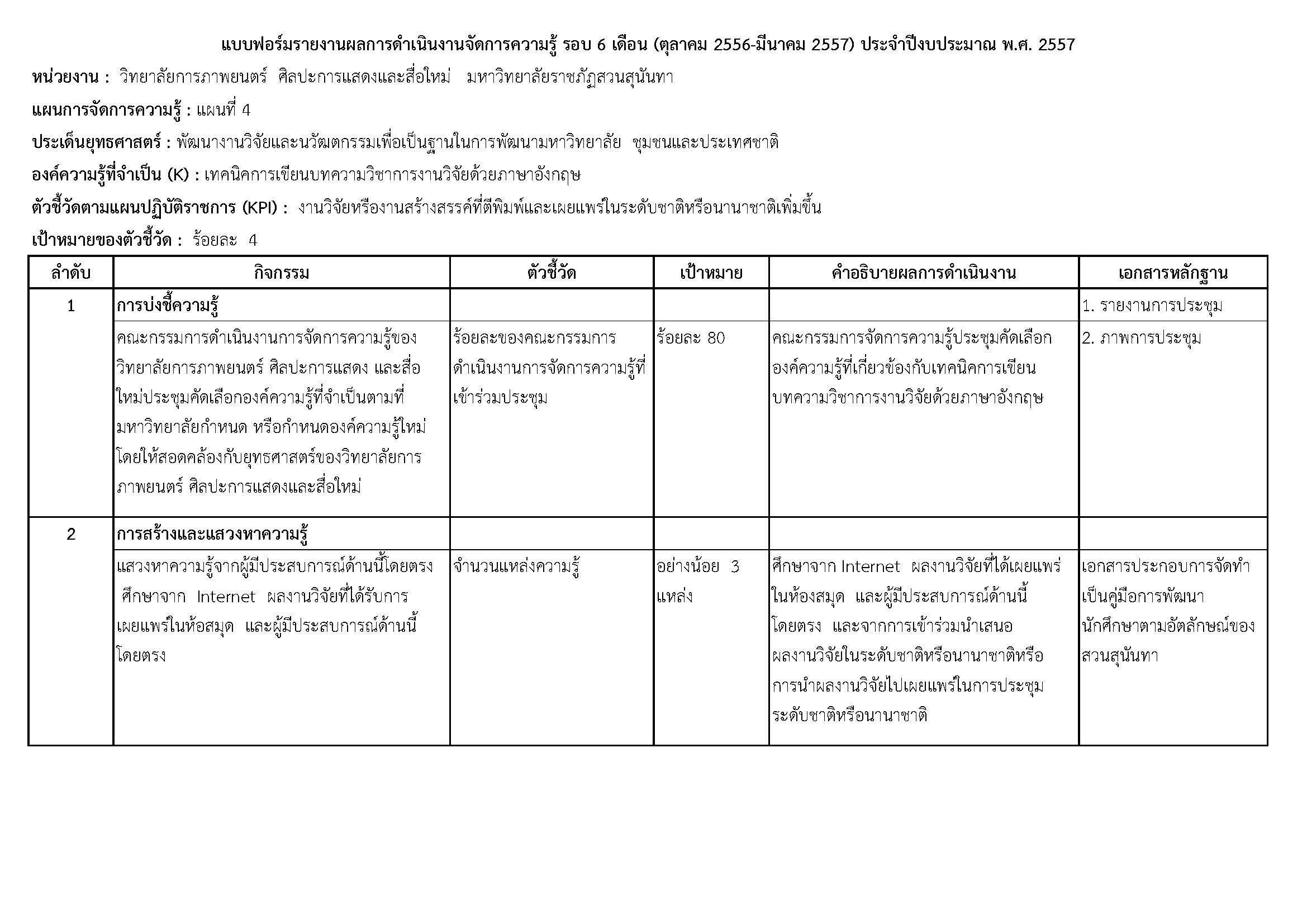 / รายงานผลการดำเนินงานจัดการความรู้ รอบ 6 เดือน วิทยาลัยการภาพยนตร์ฯ