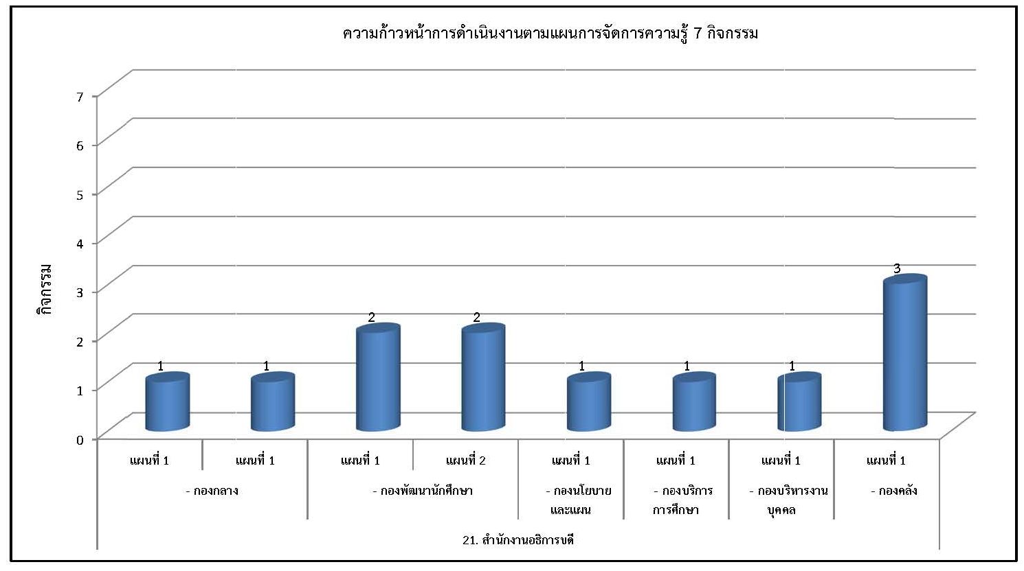 ตามที่มหาวิทยาลัยกำหนดให้หน่วยงานจัดทำแผนการจัดการความรู้ ประจำปีงบประมาณ พ.ศ. 2556  ไปแล้วนั้น กองนโยบายและแผนได้ความก้าวหน้าผลการดำเนินงานจัดการความรู้ (รอบ ๖ เดือน) และได้รวบรวม สรุปผลความก้าวหน้าเสร็จเรียบร้อยแล้ว พร้อมทั้งนำเสนอต่อที่ประชุมคณะกรรมการบริหารมหาวิทยาลัยเพื่อทราบ เมื่อวันที่ 14 พฤษภาคม 2556 และได้ชี้แจงต่อที่ประชุมคณะกรรมการดำเนินงานจัดการความรู้ ระดับมหาวิทยาลัย ครั้งที่ 2/2556 เมื่อวันที่ 15 พฤษภาคม 2556 โดยแต่ละหน่วยงานมีความก้าวหน้าการดำเนินงาน ดังนี้